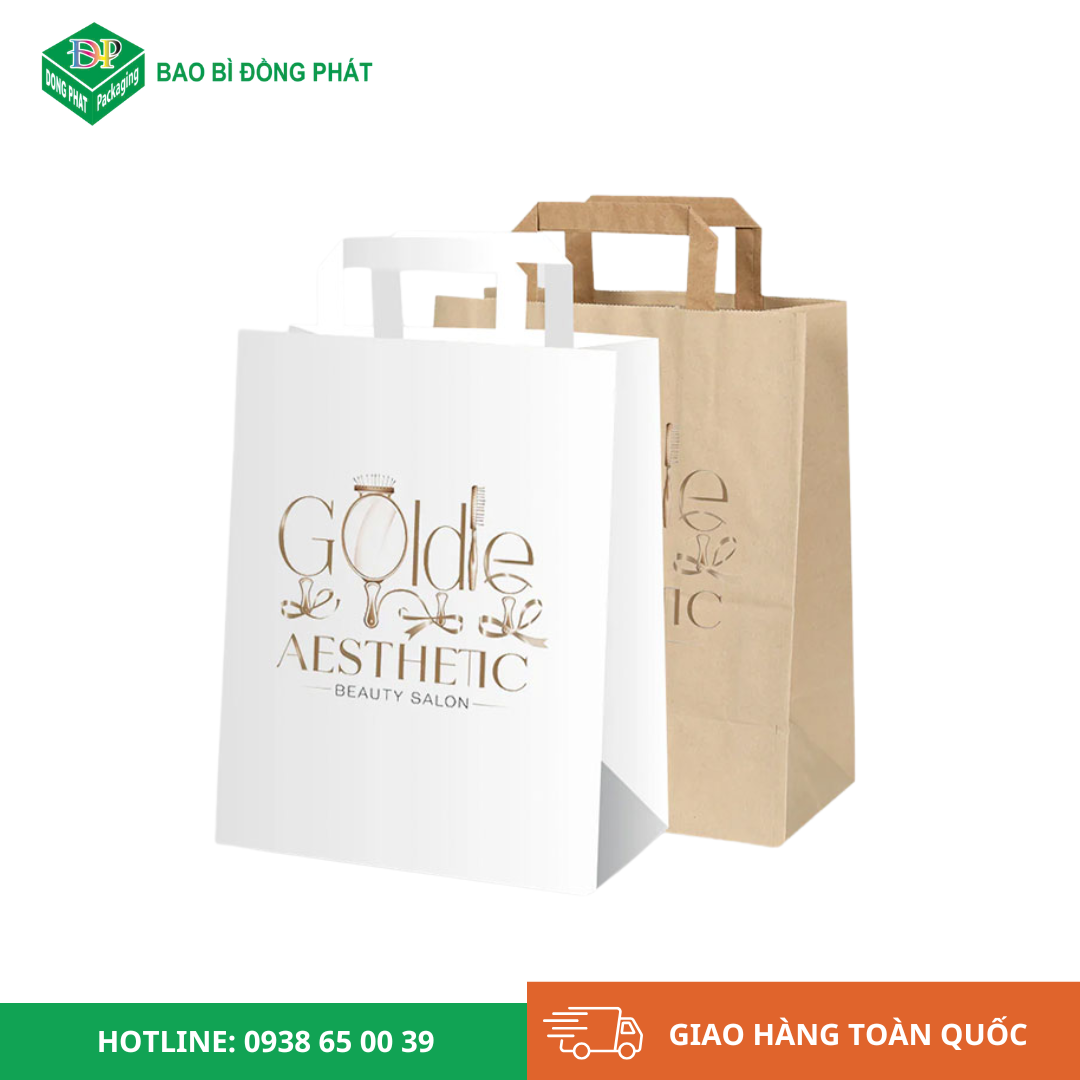 • Túi giấy kraft với màu nâu tự nhiên, thân thiện môi trường và mang phong cách tối giản hiện đại.