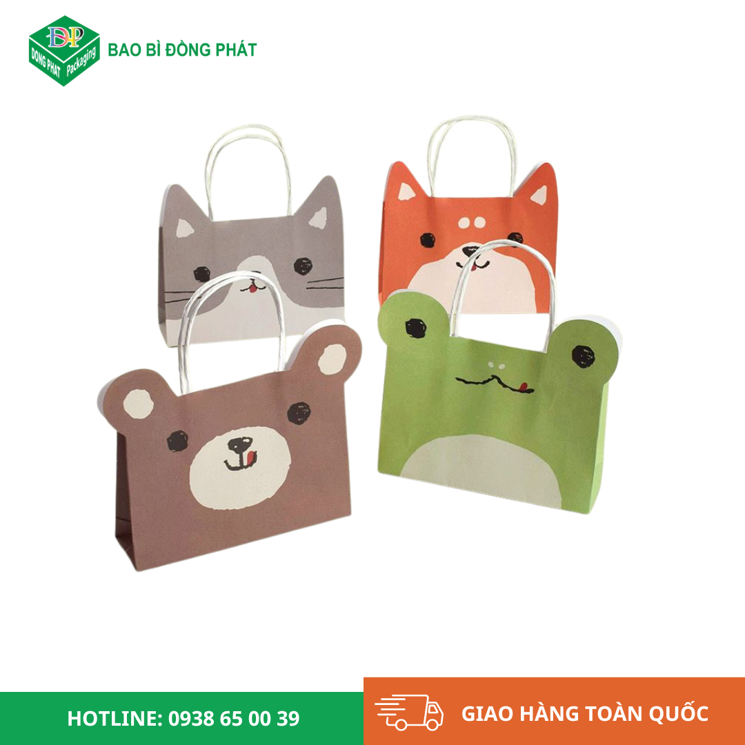 • Túi giấy in hình các loài động vật dễ thương, màu sắc tươi sáng và hình ảnh sắc nét tạo cảm giác vui nhộn, sinh động.